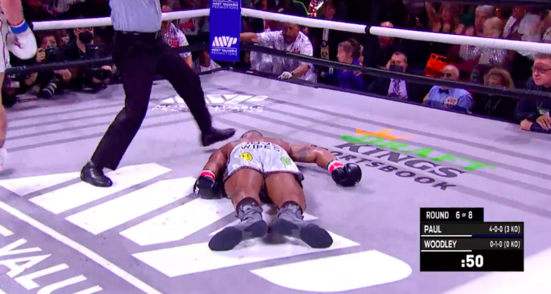 В крайна сметка след като двамата се срещнаха, феновете наблюдаваха в първите 5 рунда прегръщане и клинч, което доведе до доста освирквания от публиката в залата. На пук на старта, битката приключи с тежък нокаут в седмия рунд, след като Пол нацели главата на Уудли с брутална деснячка, която трупира бившия UFC боец.