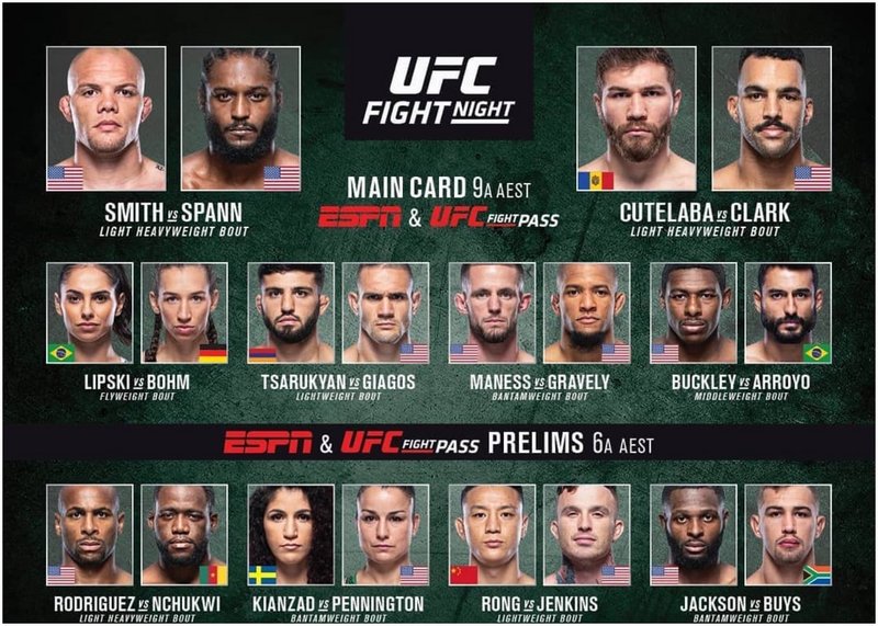 Главна карта:- Anthony Smith победи Ryan Spann със събмишън 1, 3:47