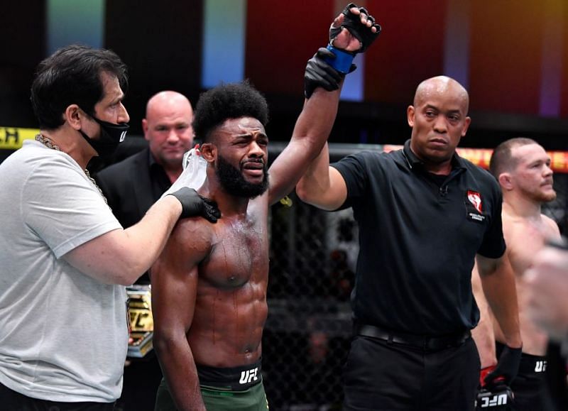 Той вкара непозволен удар с коляно в главата на Стърлинг, който беше на земята. Алджамейн разбра, че ще стане шампион с дисквалификация и реши да не продължава боя, с което спечели титлата.