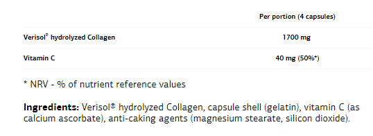 Колагенът е основният структурен протеин в ставите на тялото. Този продукт съдържа чист VERISOL® хидролизиран колаген, който се хидролизира до съставни аминокиселини за оптимално използване от организма.