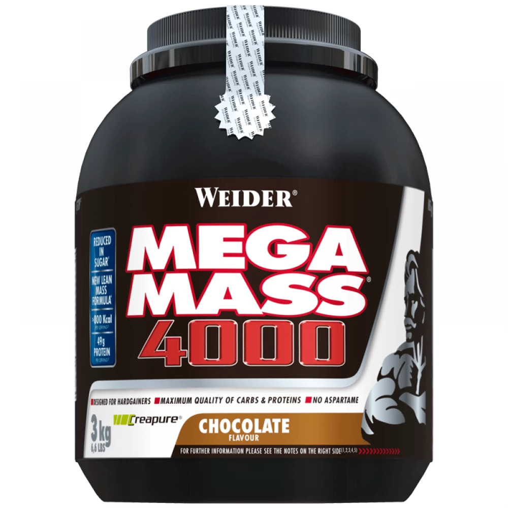 Съдържанието на захар е драстично намалено - изключителната смес от въглехидрати се прави от царевичен малтодекстрин, натурално пшеничено нишесте, пълномаслено брашно и натурално картофено нишесте. Mega Mass® 4000 съдържа отлична протеинова матрица от изолат на млечен протеин, концентрат на суроватъчен протеин и яйчен протеин. Тази комбинация е идеална за максимално увеличаване на мускулната маса. 3,4 g Creapure®, витамини и минерали са добавени за прецизиране на формулата.